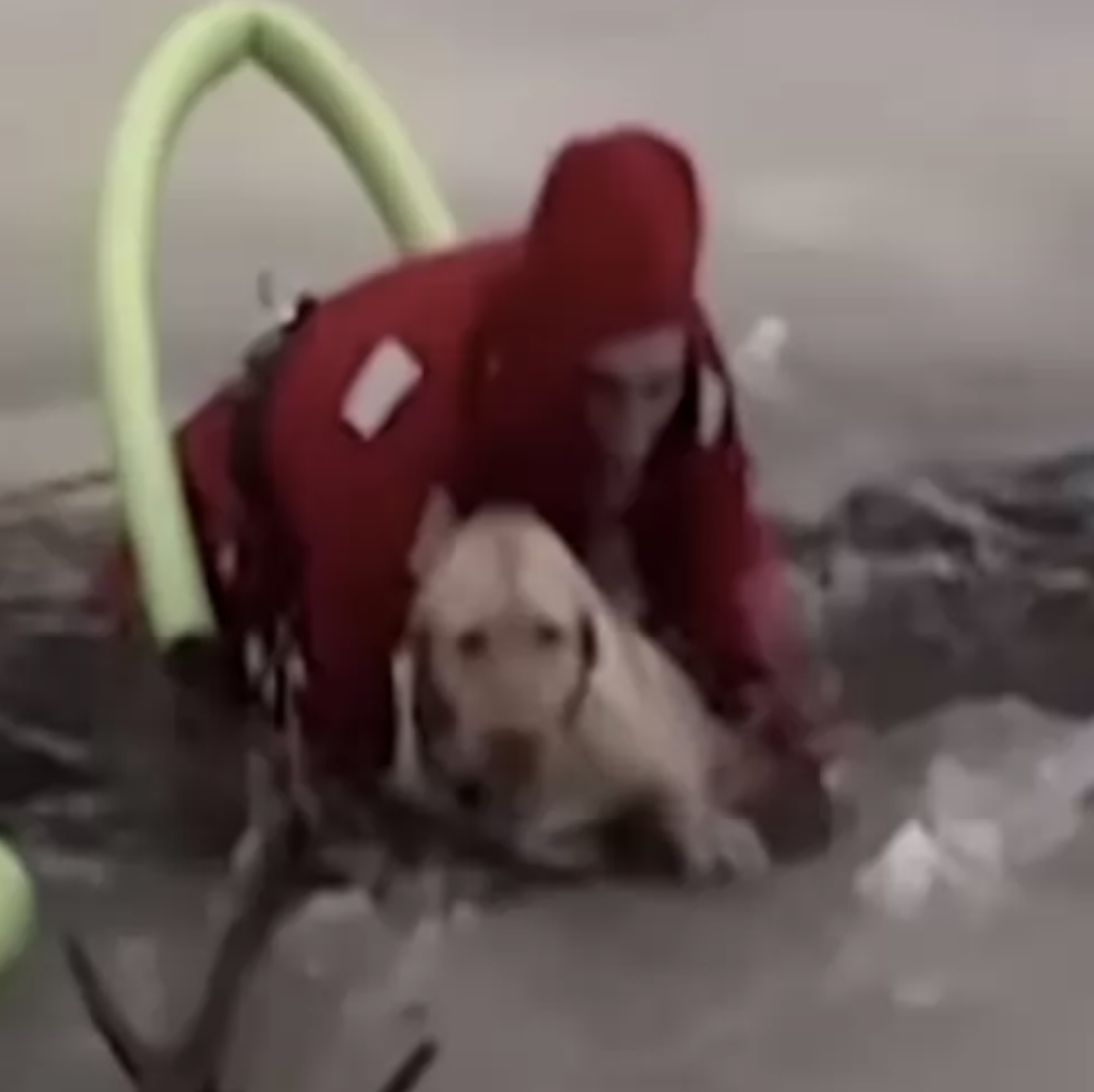 驚見有狗狗「受困冰湖中」嗚咽求助 消防員超猛相救...牠上岸秒腿軟:謝謝你們