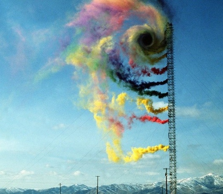 ▼20.用彩色煙霧進行氣流研究。