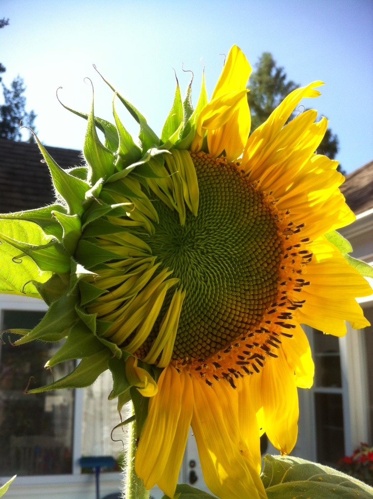 ▼4.半開的向日葵。