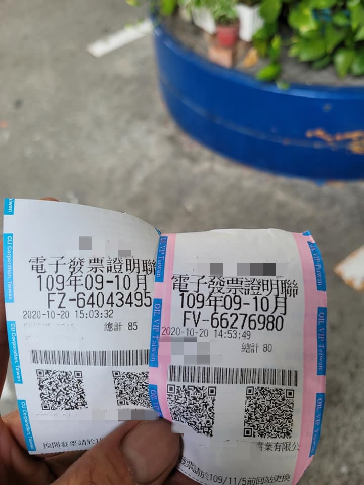 ▼最近高雄一名網友在臉書社團PO文,表示在某加油站加了80元的95無鉛汽油,當時工讀生收了他100元找了20,但是卻沒有給他發票,在他善意的提醒下,對方愣了一下才補上。