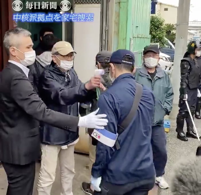 2021年10月27日最近一段日本警察突襲激進勢力「中核派」據點的影片在網路上熱傳。當時日本警視廳出動100多名警察對東京江戶川的「中核派」據點實施了強制搜查。剛開始畫風很正常,後來卻看到警察們竟然乖乖排隊,開始接受中核派成員的體溫檢測,那荒誕的畫面很快在網路上引發討論。