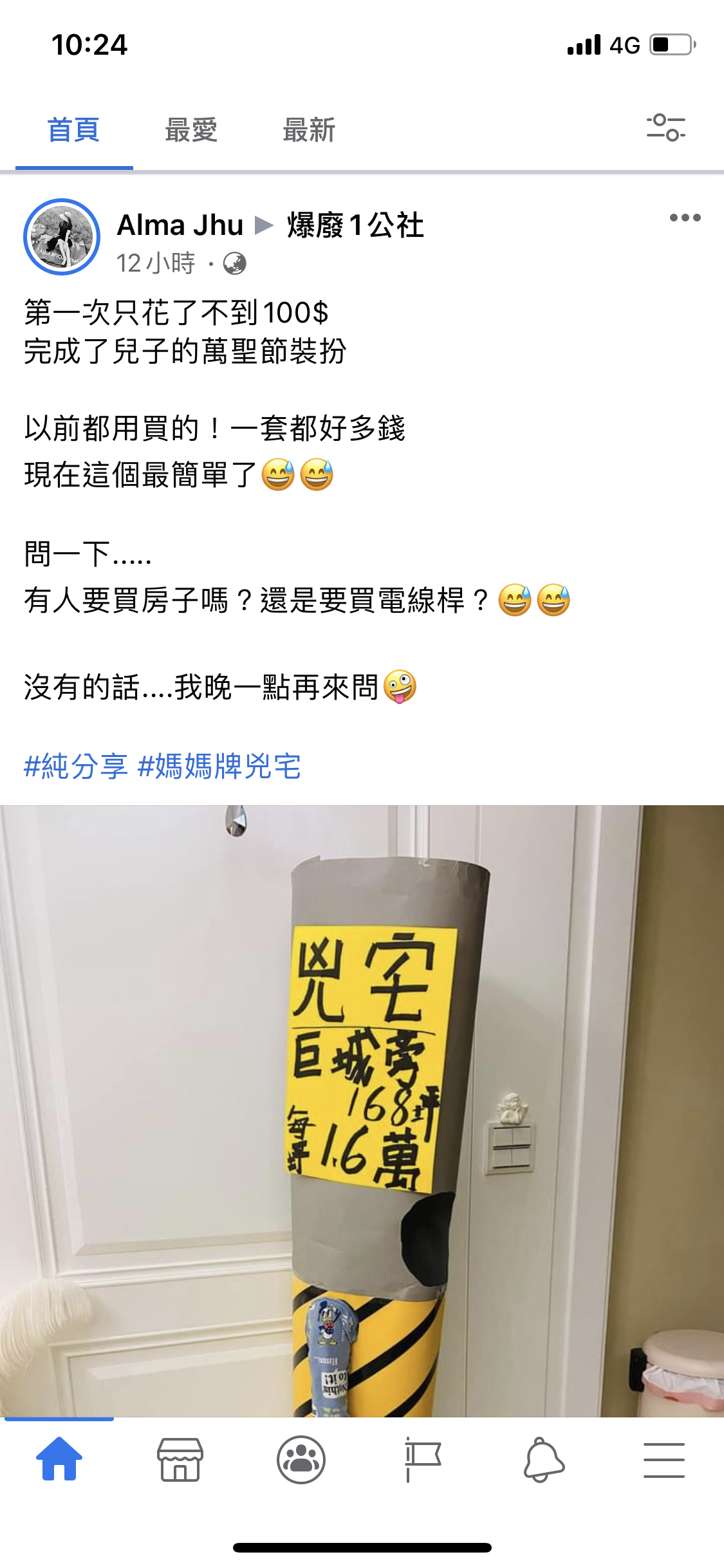 網友們看到這位媽媽的萬聖節DIY成果都非常佩服,紛紛開玩笑說:「可以借我張貼廣告嗎」、「要提醒小孩太矮的地方不要進去,不然電線桿會凹」、「巨城地有這麼便宜啊」、「還少一隻狗撒尿」、「這位媽媽實在是太有才了」。這位媽媽好用心,花最小錢獲得最大掌聲,真是大成功~