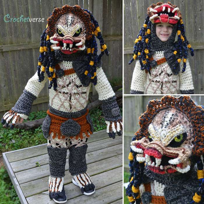 ▼史蒂芬妮表示,每一套手工針織服裝,皆需要耗時大約25~40個小時來完成,製作排程都在兩個星期左右。不急不徐的每日分工完成,才能達到如此精細、且整體完成度極高的大師級神人手作成品。照片中這個作品的角色,出自於系列電影《終極戰士:掠奪者》(The Predator)。