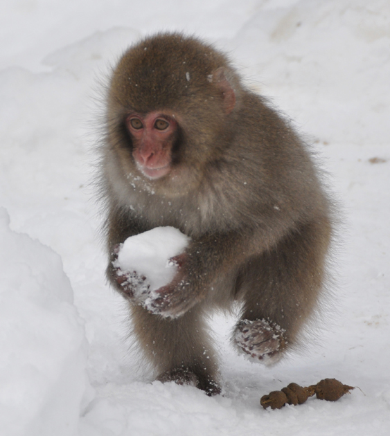 小猴子「搓雪球」技巧比人類強好多 雪地裡玩到停不下網萌化:小手好會捏~