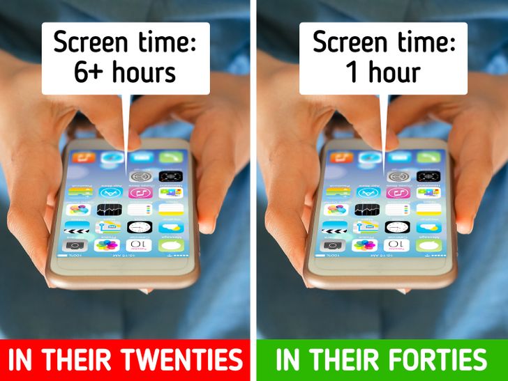 ▼玩手機的時間變少,更好地利用時間:統計數據顯示,40歲以上的人使用社群網站的次數比年輕人要少得多,還有56%的人表示可以完全不用社群網站。你能更好地規劃、利用時間。