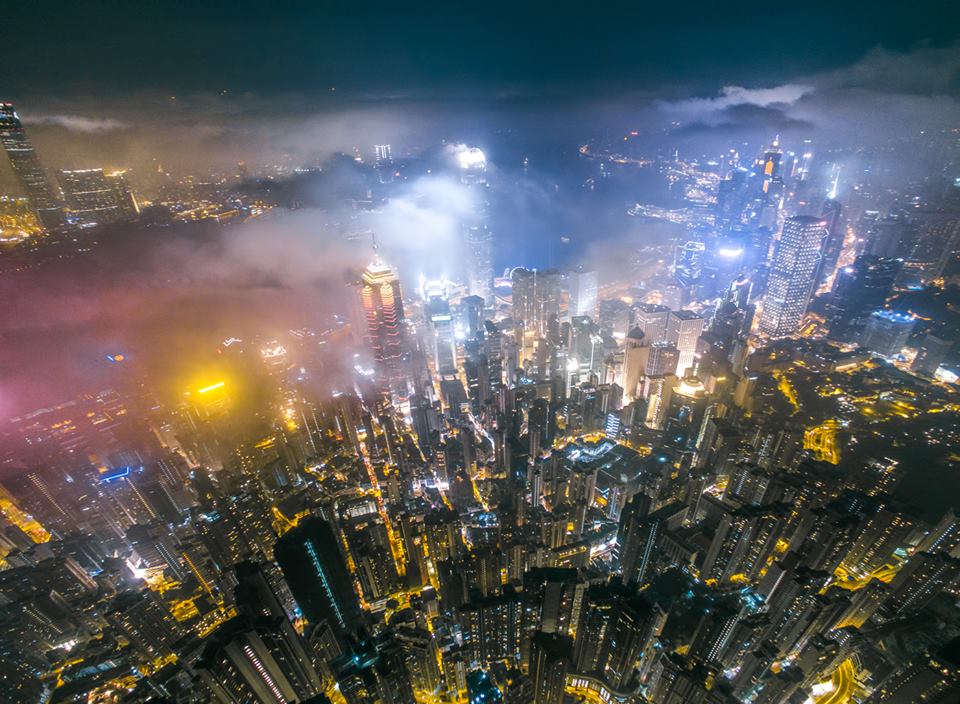 ▼夜晚雲霧籠罩中的香港又是另一番模樣,就像是虛幻的夢境,美到不真實!