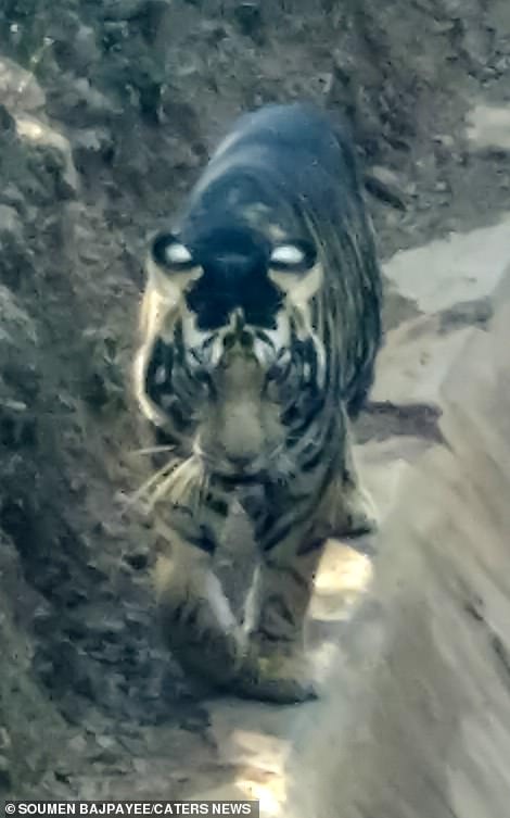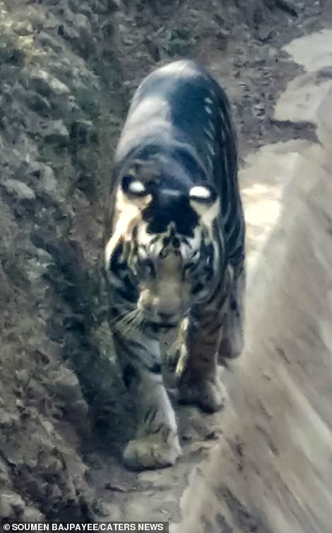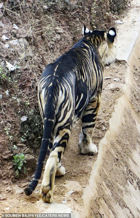 2021年11月06日老虎是自然界中的頂級掠食者,牠們有一身黃黑交錯的斑紋,看起來非常霸氣。日前印度業餘攝影師Soumen Bajpayee在奧里薩邦(Odisha)拍到了一隻外表獨特的老虎。牠身上的條紋不是黃白分明的,而是大片黑色幾乎覆蓋全身,是一隻「黑虎」。