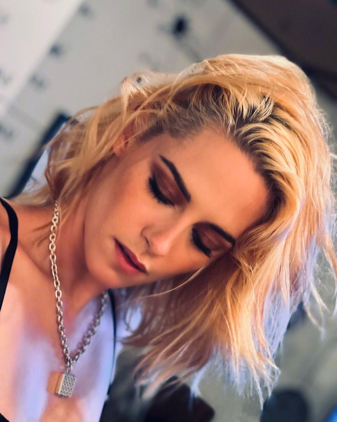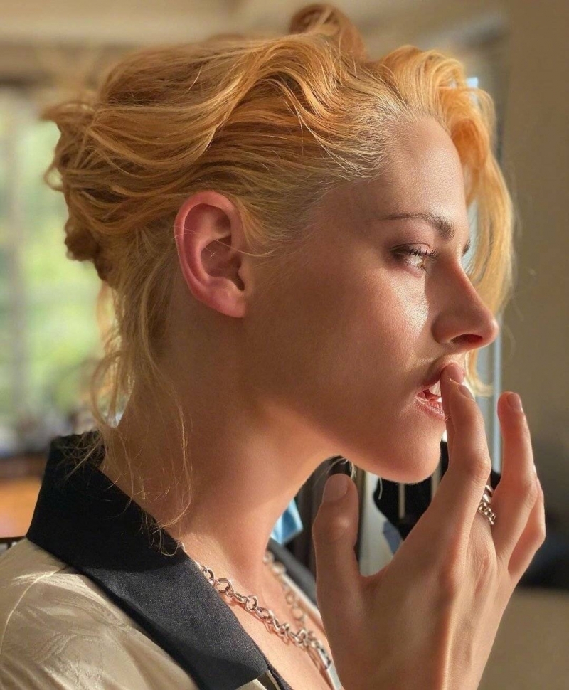 ▼之前克莉絲汀史都華曾經曝光過一組幕後花絮照。留著一頭金髮的她展現出絕美的側顏,那完美的下頜線、挺拔的鼻子,讓許多女生都超羨慕。