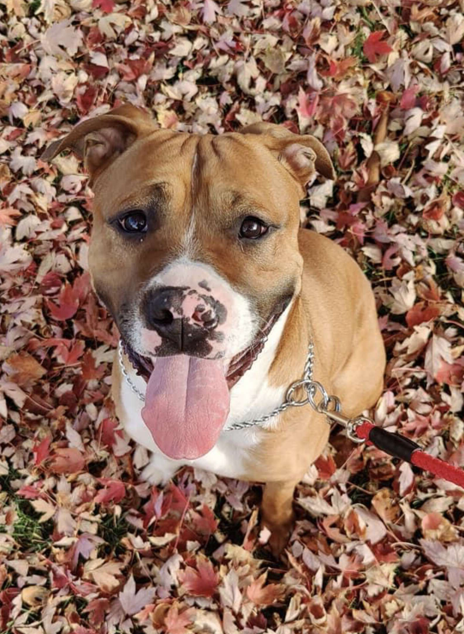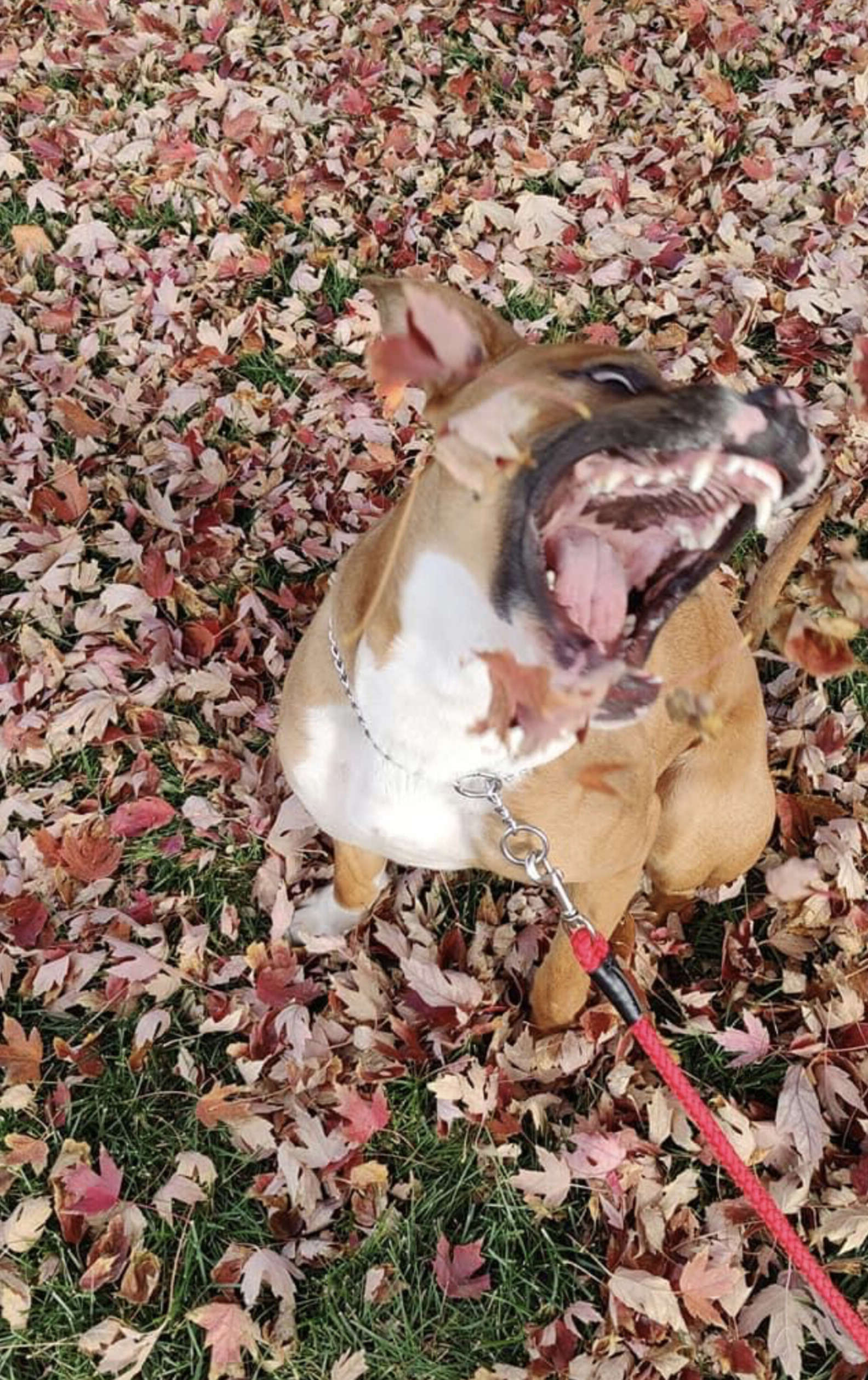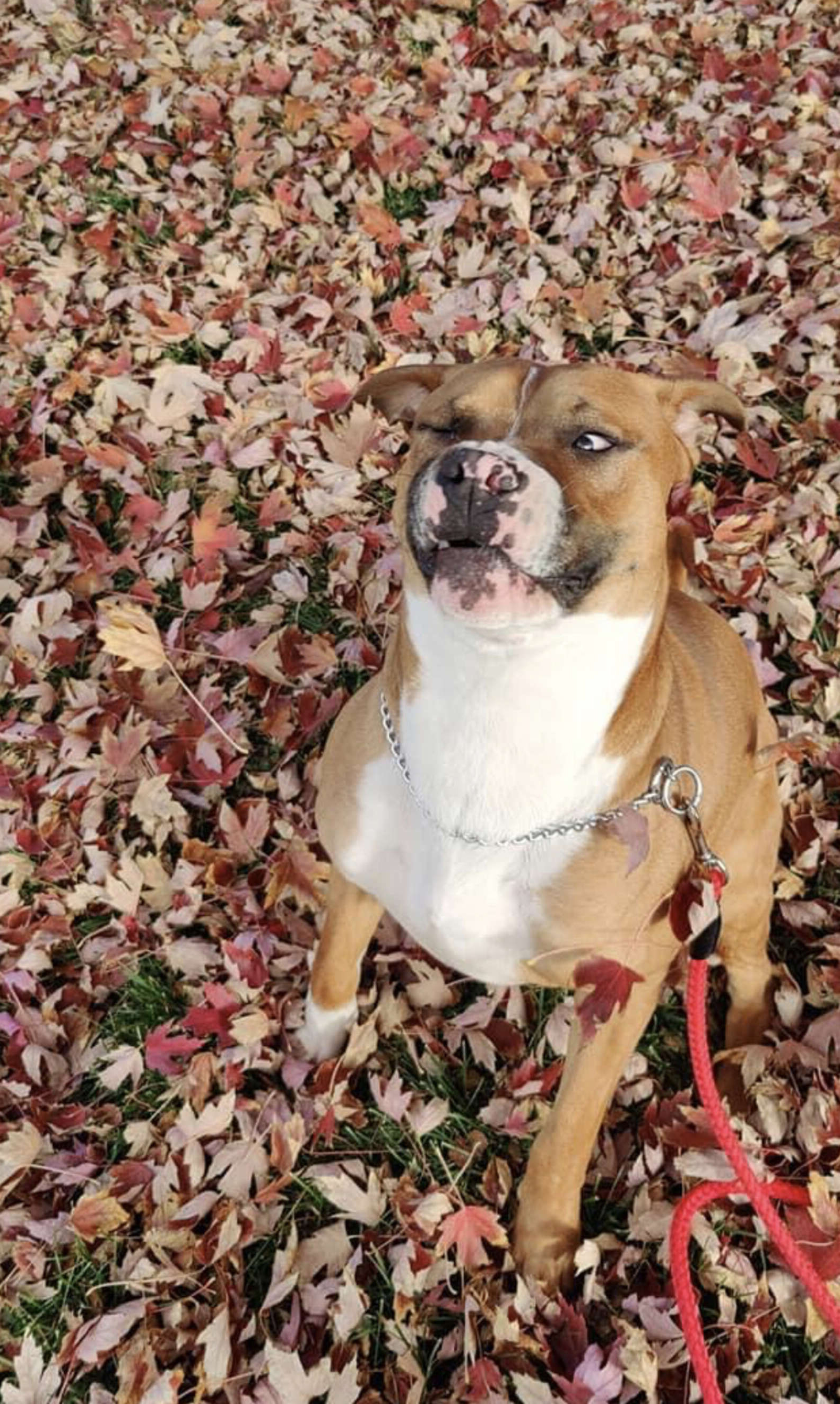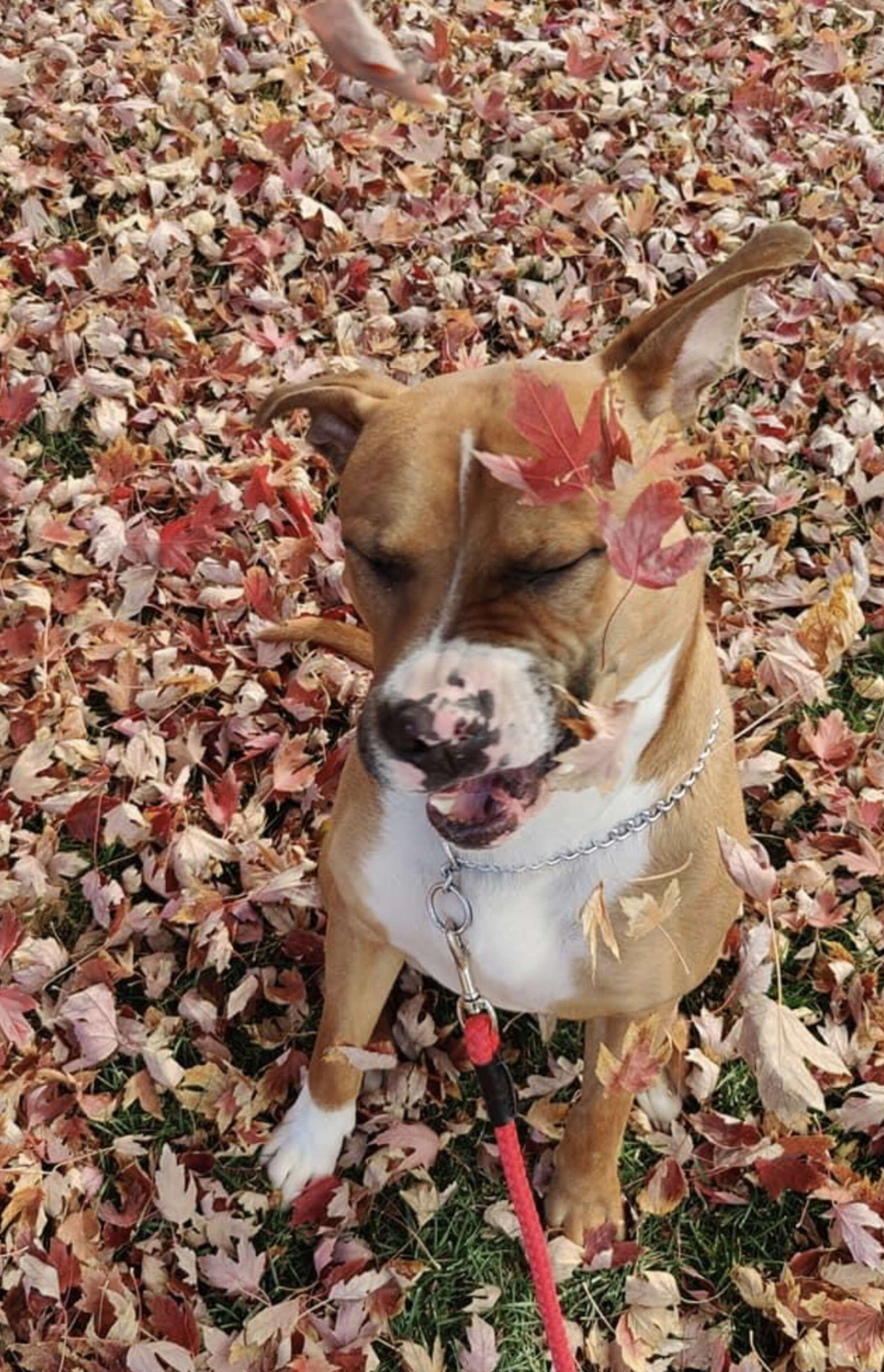 2021年11月15日國外網友Tess Amanda養了一隻1歲大的狗狗Max。Max非常活潑,平時喜歡咬玩具,還很喜歡外出散步。不過牠不擅長拍照,每次主人想給牠拍可愛的照片,牠都會擺出搞怪的表情和動作,讓整個氣氛大變樣。那天主人帶牠外出散步欣賞秋天的美景,牠又開始搞怪了~