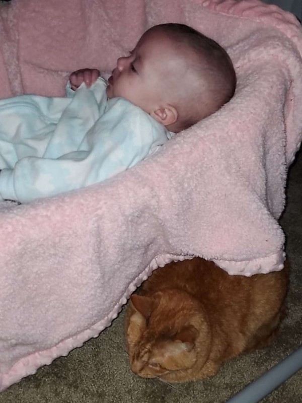 ▼只見小女兒在嬰兒床上睡著,Sunny悄悄溜進她的房間,跳到嬰兒床上,窩在她旁邊陪睡。Sunny年紀大了,平時很討厭跳躍,嬰兒床的高度對牠來說並不舒服,但牠還是努力跳上去,在小主人身邊待了4個小時。