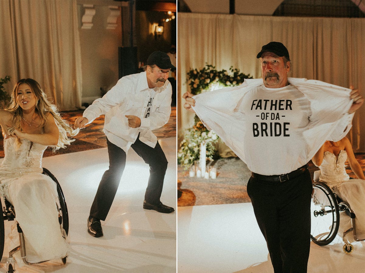 ▼Chelsie的爸爸為女兒準備了一個大驚喜,他穿著寫有「新娘的父親」的T恤,和女兒一起熱舞。