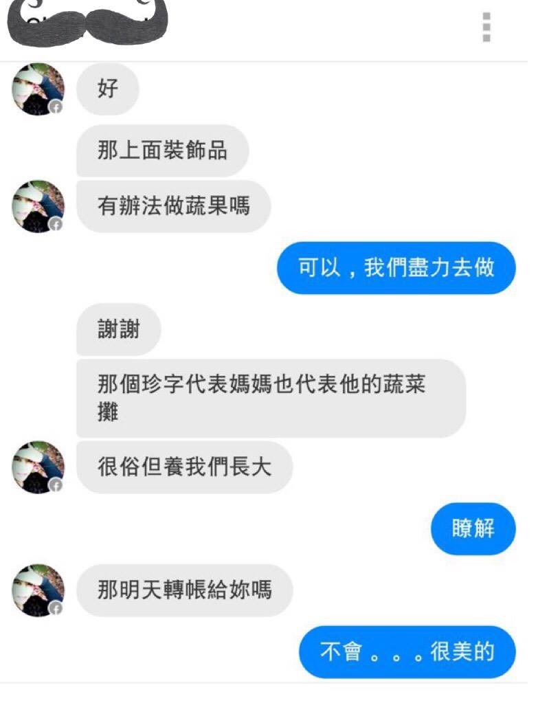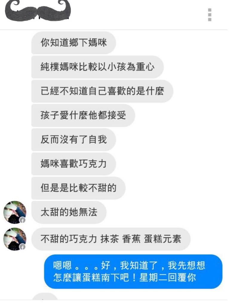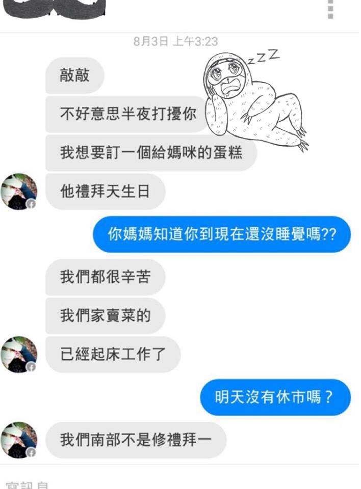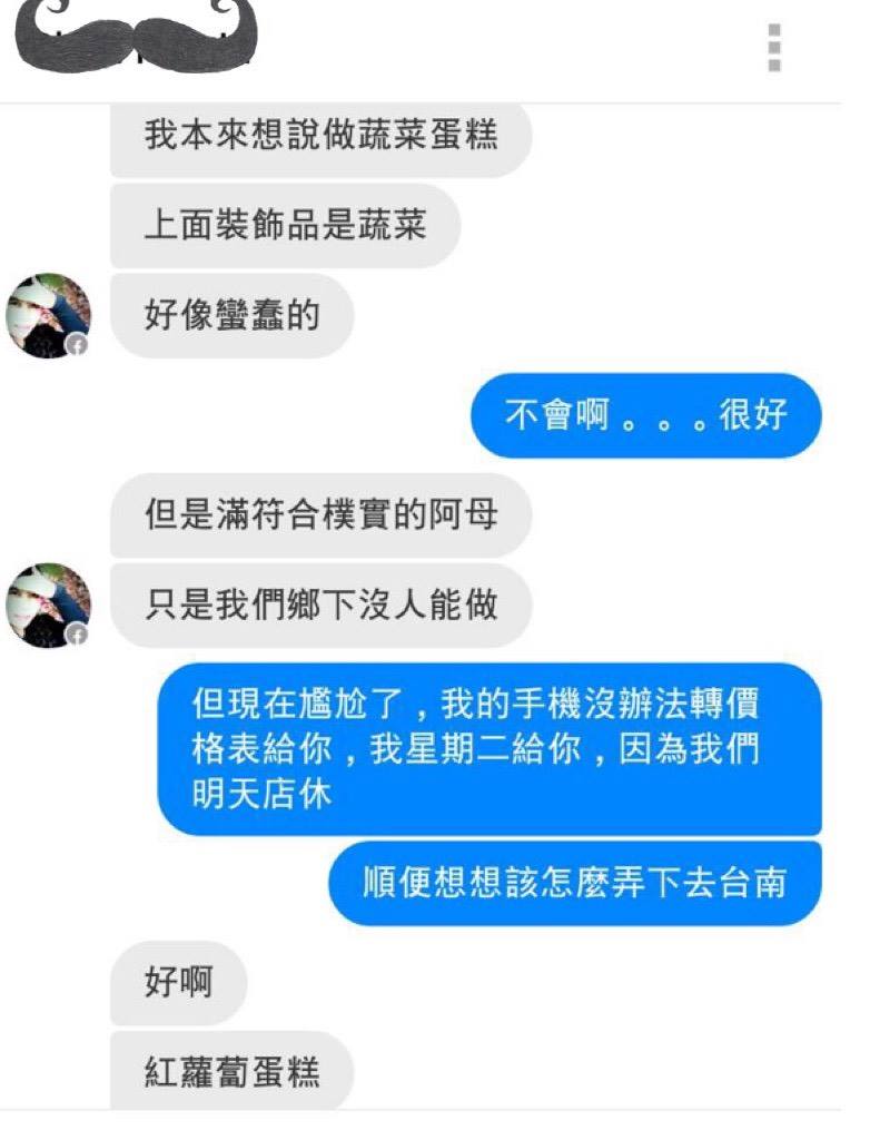▼聊下去發現他是想給家裡賣菜的母親一個特別的生日蛋糕,不過家卻住在台南。