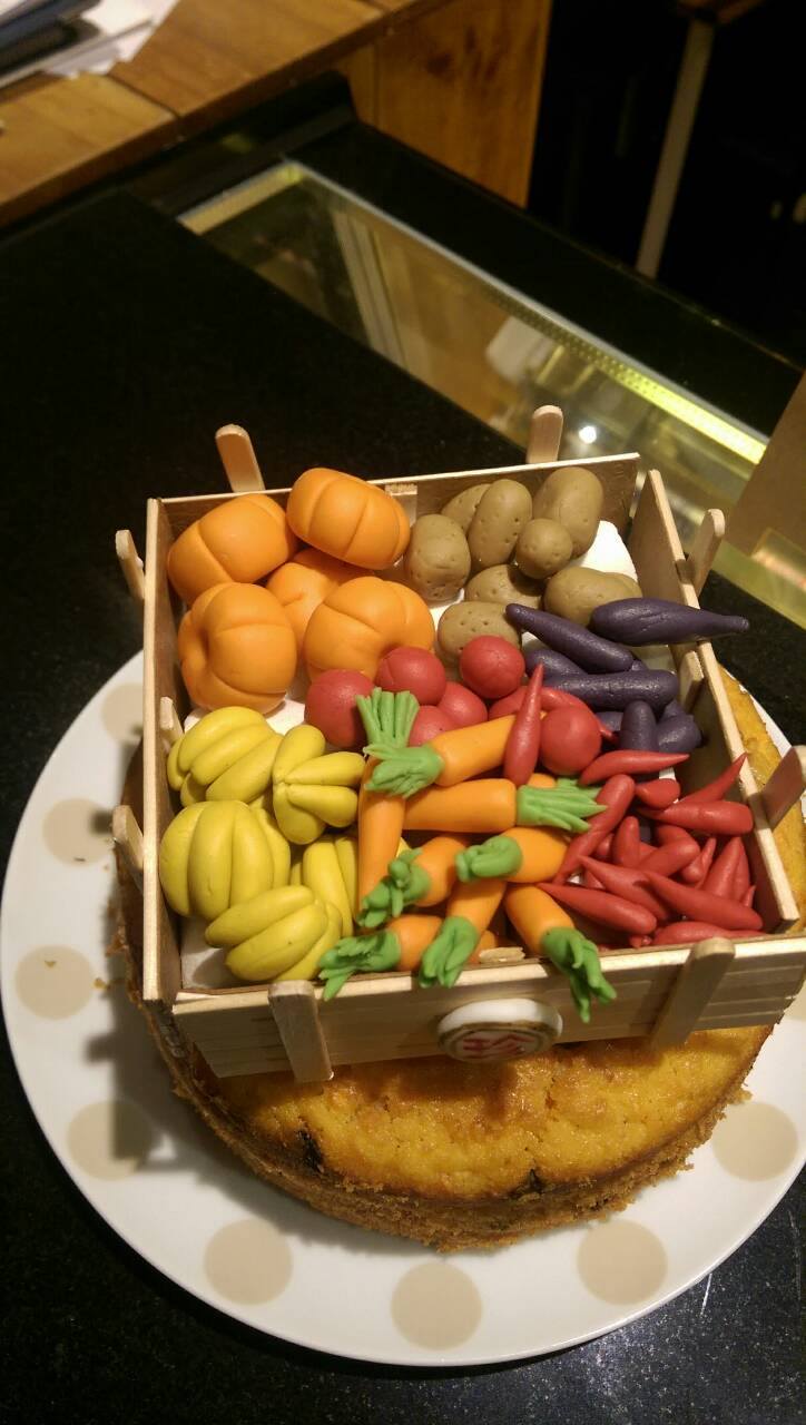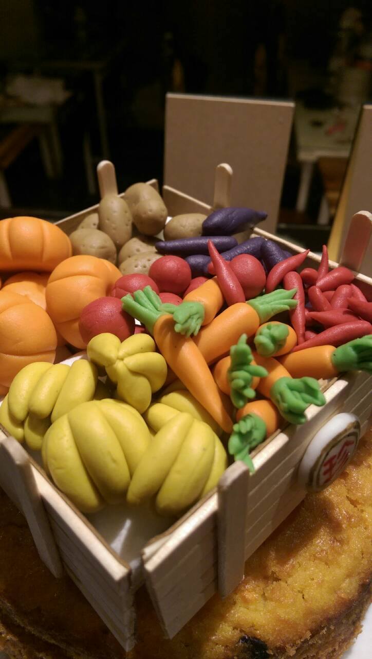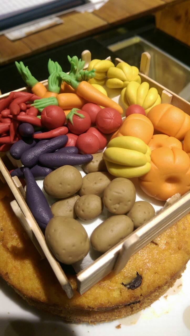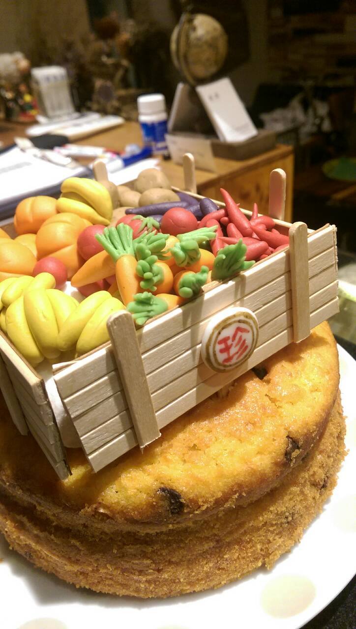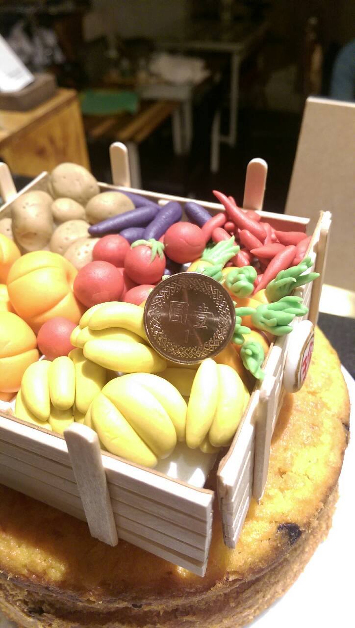▼接下來聊到蛋糕要做成什麼模樣的問題,由於母親是賣菜的,兒子決定就做成蔬菜蛋糕的模樣。