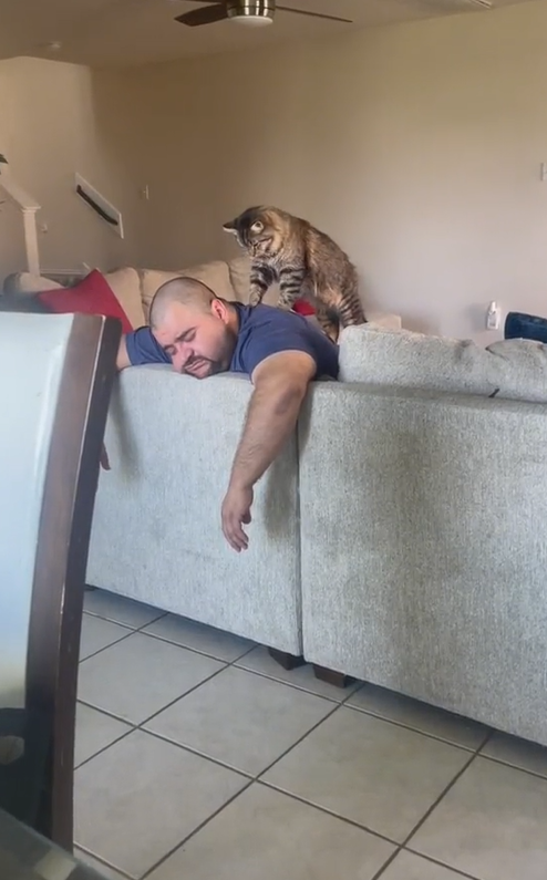 孝順ㄟ貓!為爸爸提供「肉球馬殺雞」 滿臉舒爽羨煞網友:太寵你了吧!