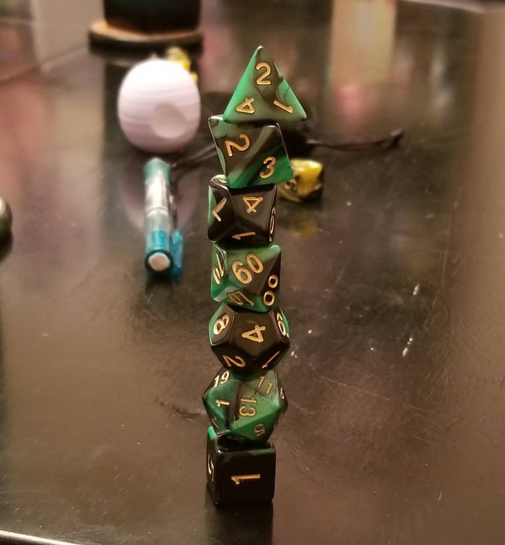 ▼他用骰子搭了一座高塔。