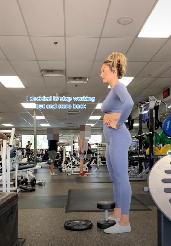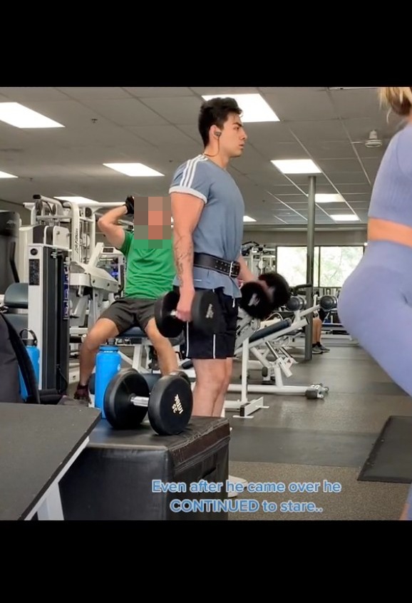 2021年11月22日很多人都有被偷瞄的經歷,對此感覺很不舒服。日前美國一名私人健身教練Heidi Aragon去健身房時,就被一名陌生男子偷瞄。她將手機放在長凳上,拍攝自己做深蹲的模樣,卻發現後方有一名身穿綠色上衣的中年男子,一直在盯著她看,那視線令她很不舒服。