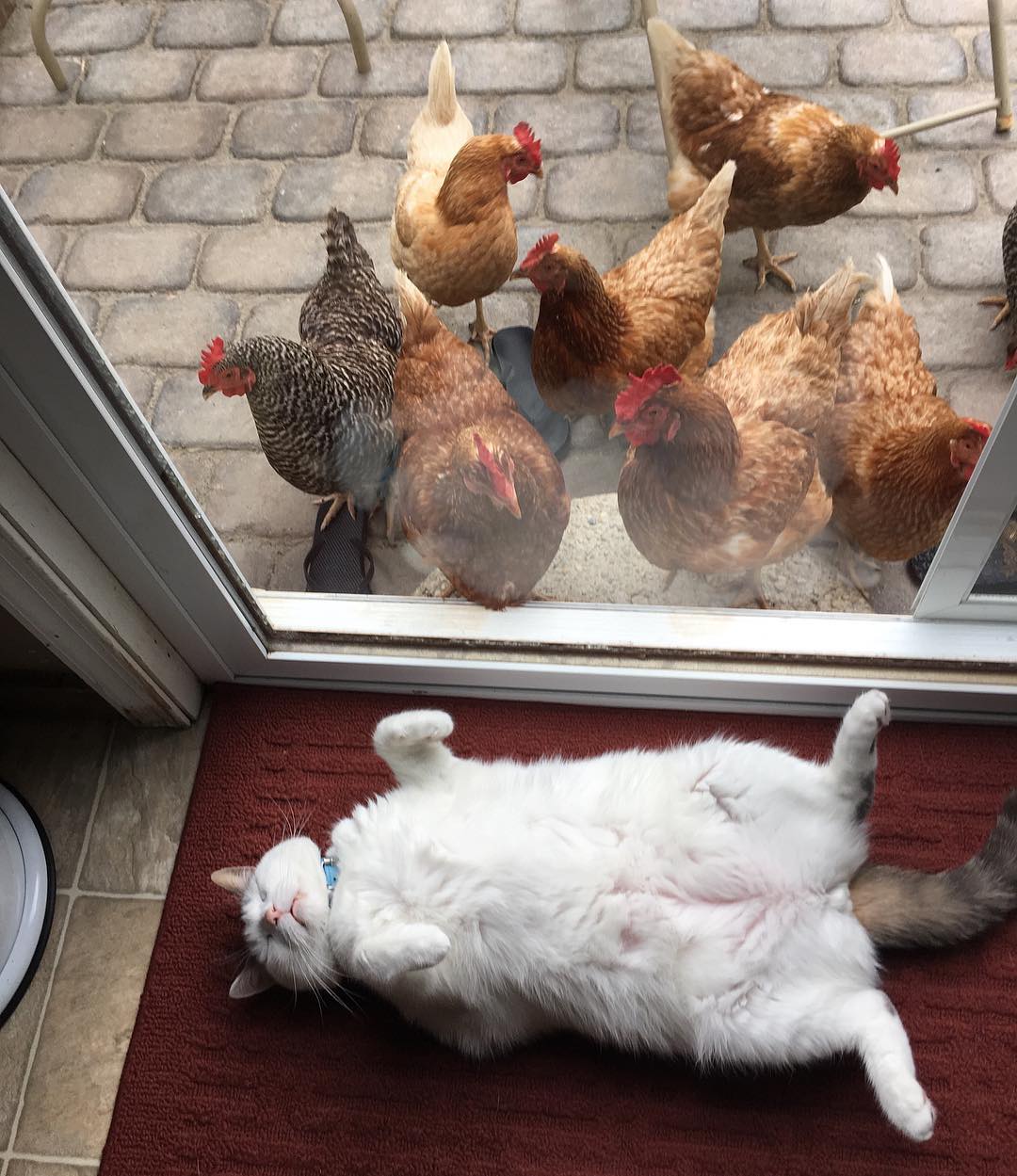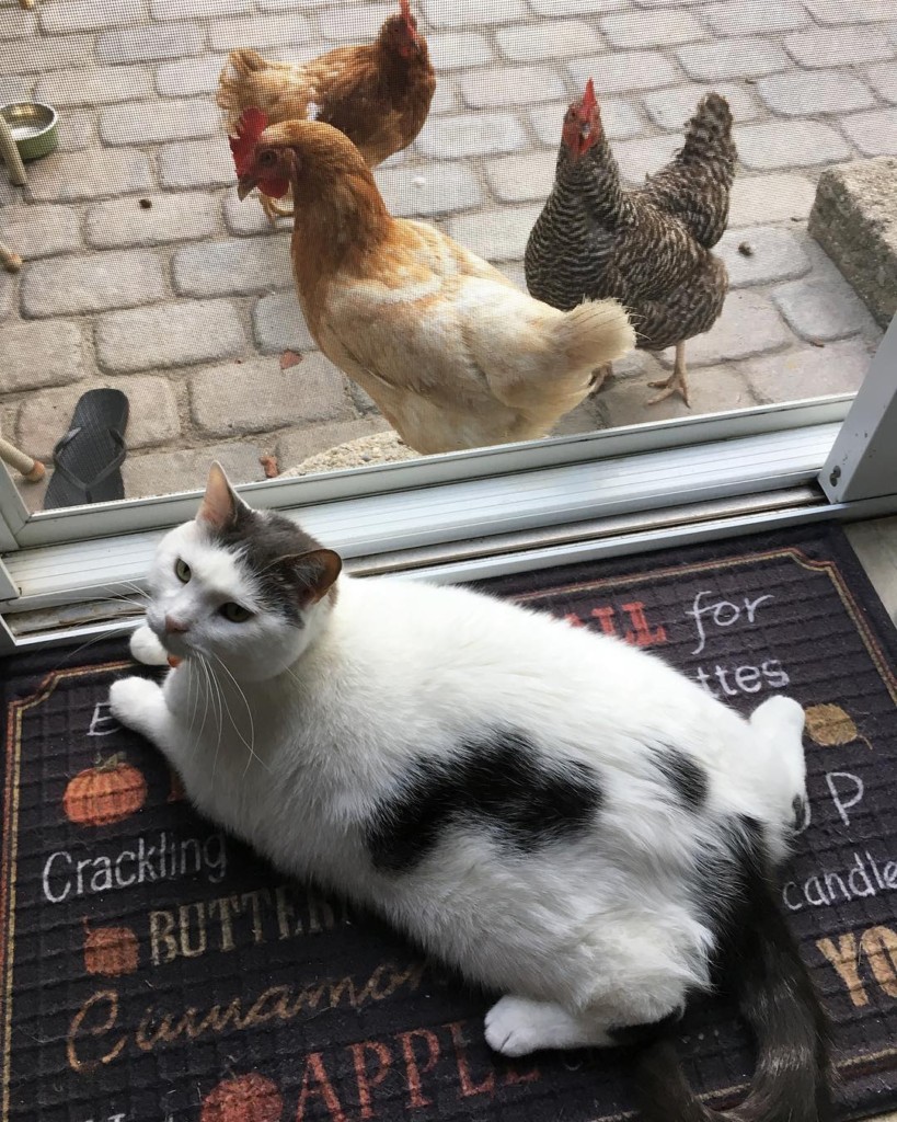 胖貓皇離奇收編「雞群鐵粉」 每天躺門口「擺不同英姿」接受膜拜