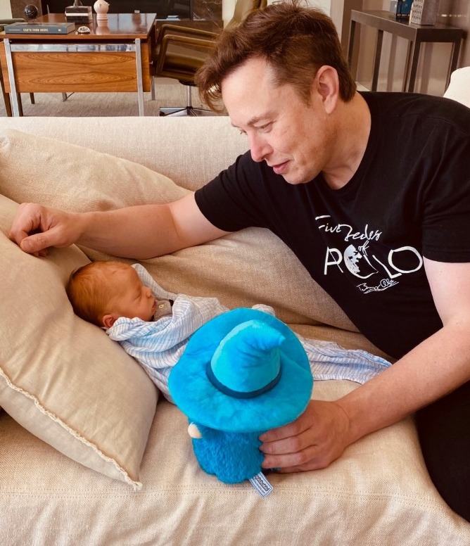 2021年11月25日日前特斯拉執行長馬斯克(Elon Musk)透過視訊參加一場與美國國家科學院的會議。他竟抱著自己18個月的兒子「X寶寶」共同登場。X寶寶乖乖待在爸爸懷裡,臉上掛著嬌憨的笑容,還時不時對鏡頭打招呼。馬斯克看到兒子的可愛表現,笑得非常開心~