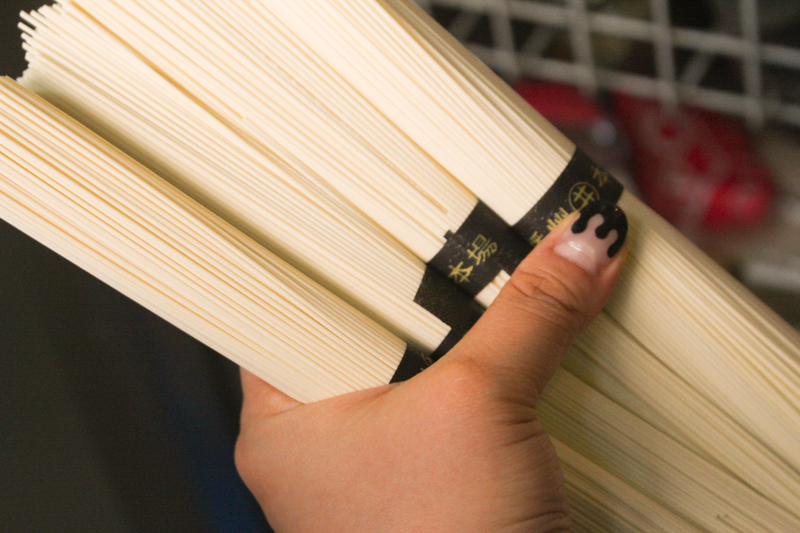 ▼「把束紙拿掉確實很麻煩,不過我每次都是把麵條折半丟進去煮,這樣束紙就會自己掉了,而且面也會熟得更快一點。」