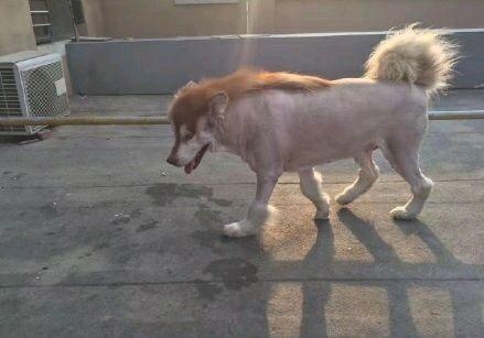 ▼這位飼主養的阿拉斯加雪橇犬有一身漂亮的皮毛。她拜託爸爸幫自己照顧狗狗一天,沒想到去接牠時,原本帥氣的外貌已經大變樣!飼主無奈說:「我才交給爸爸這隻狗狗不到一天的時間,沒想到爸爸竟然把牠帶到寵物店剃毛!」