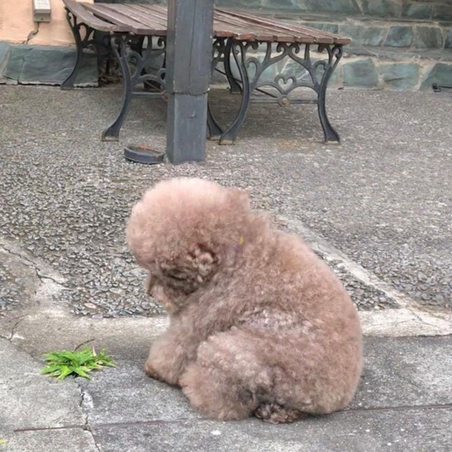 在憂鬱啥? 紅貴賓孤獨蹲坐「寂寞背影」太滄桑 一轉頭「滿臉憨樣」反差太古錐