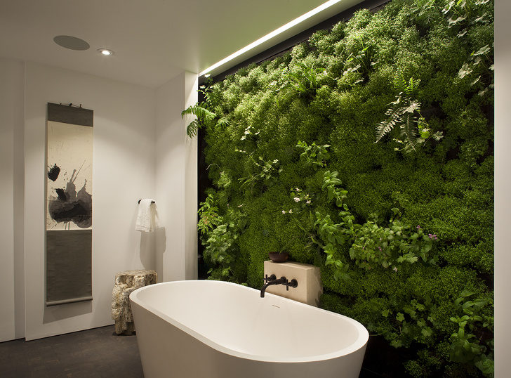 ▼13. 綠色元素融入浴室中,泡澡時心情會更放鬆。