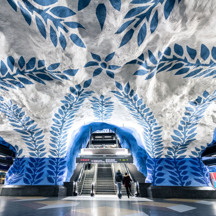 ▼瑞典斯德哥爾摩藝術地鐵Tunnelbana:這座城市的地鐵站可以稱為世界上最大的地鐵藝術博物館。在大約90座地鐵站中能看到成百上千位藝術家的作品。而中央火車站(T-Centralen)是斯德哥爾摩藝術地鐵的發源地。