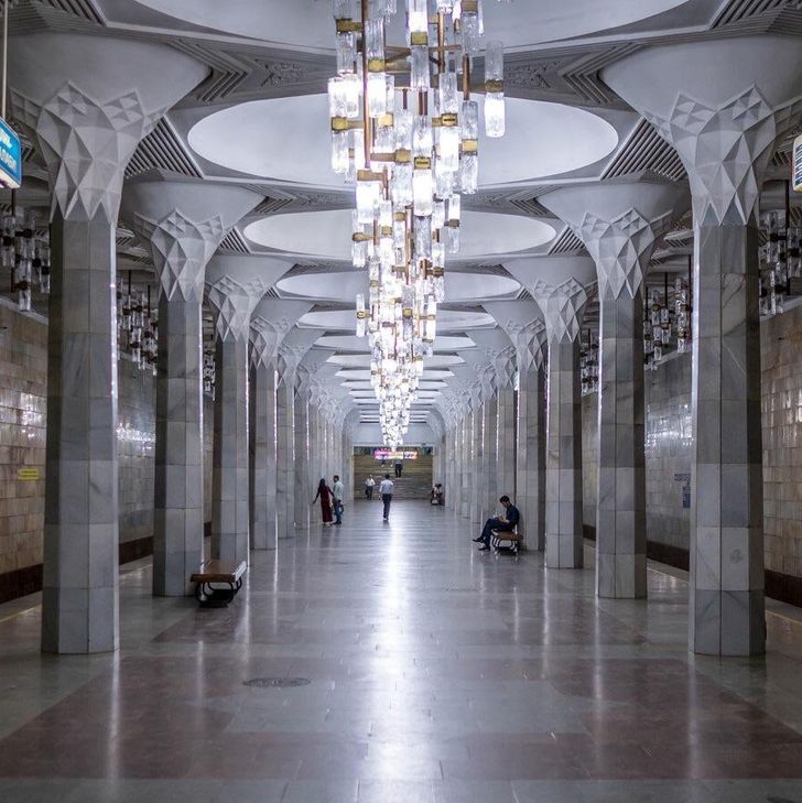 ▼烏茲別克塔什干的Alisher Navoi站:烏茲別克首都塔什干的地鐵系統並不出名,但這是世界上最具藝術氣息的地鐵系統之一,多數車站都裝飾得非常華麗。1994年啟用的Alisher Navoi地鐵站就是清真寺式建築,被認為是塔什干最美的地鐵站之一。