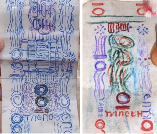 老闆說,這位街友爺爺其實畫得很好,雖然在白紙上畫的鈔票圖案不算精緻,但能夠看出他想表達的意思,不至於毫無教育水準:「應該是個有故事的人」。不管爺爺有沒有錢,只要到店裡來,老闆都會給他麵吃,就當是照顧弱勢。