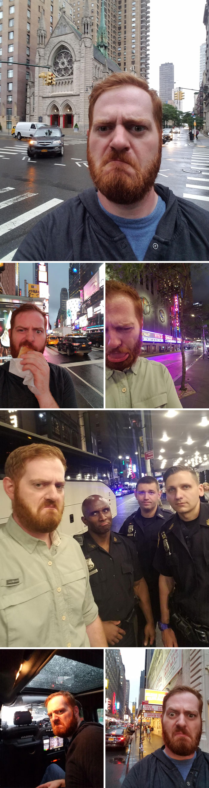 ▼來到紐約出差我不能表現得太過開心,於是我拍了一堆不開心的照片給老婆看。