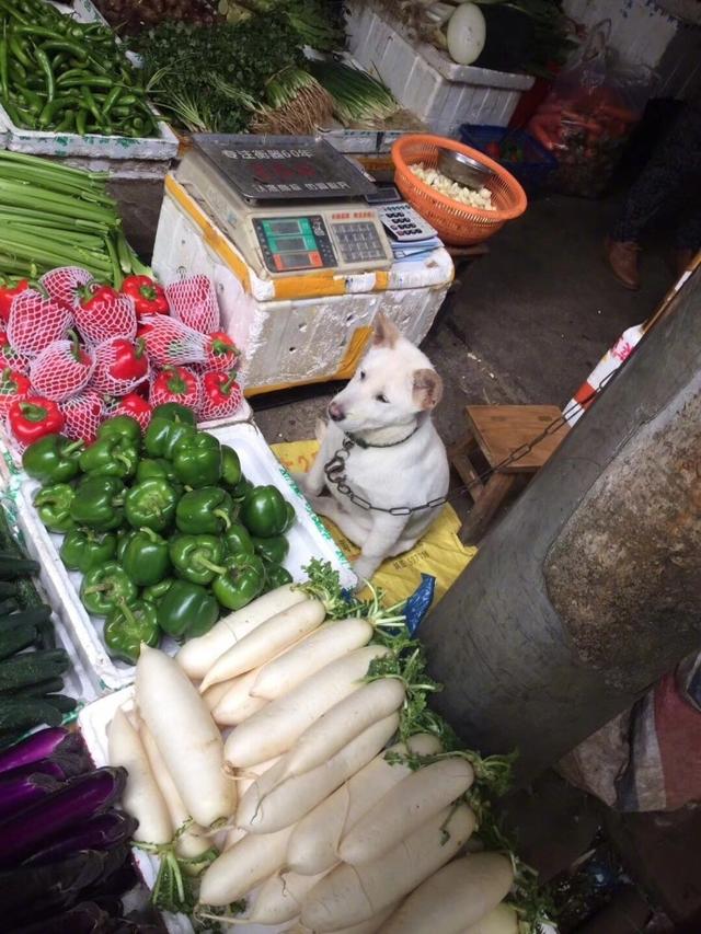 ▼不知道向這位「狗老闆」買了菜之後,有沒有附贈「摸摸頭」的服務呢?
