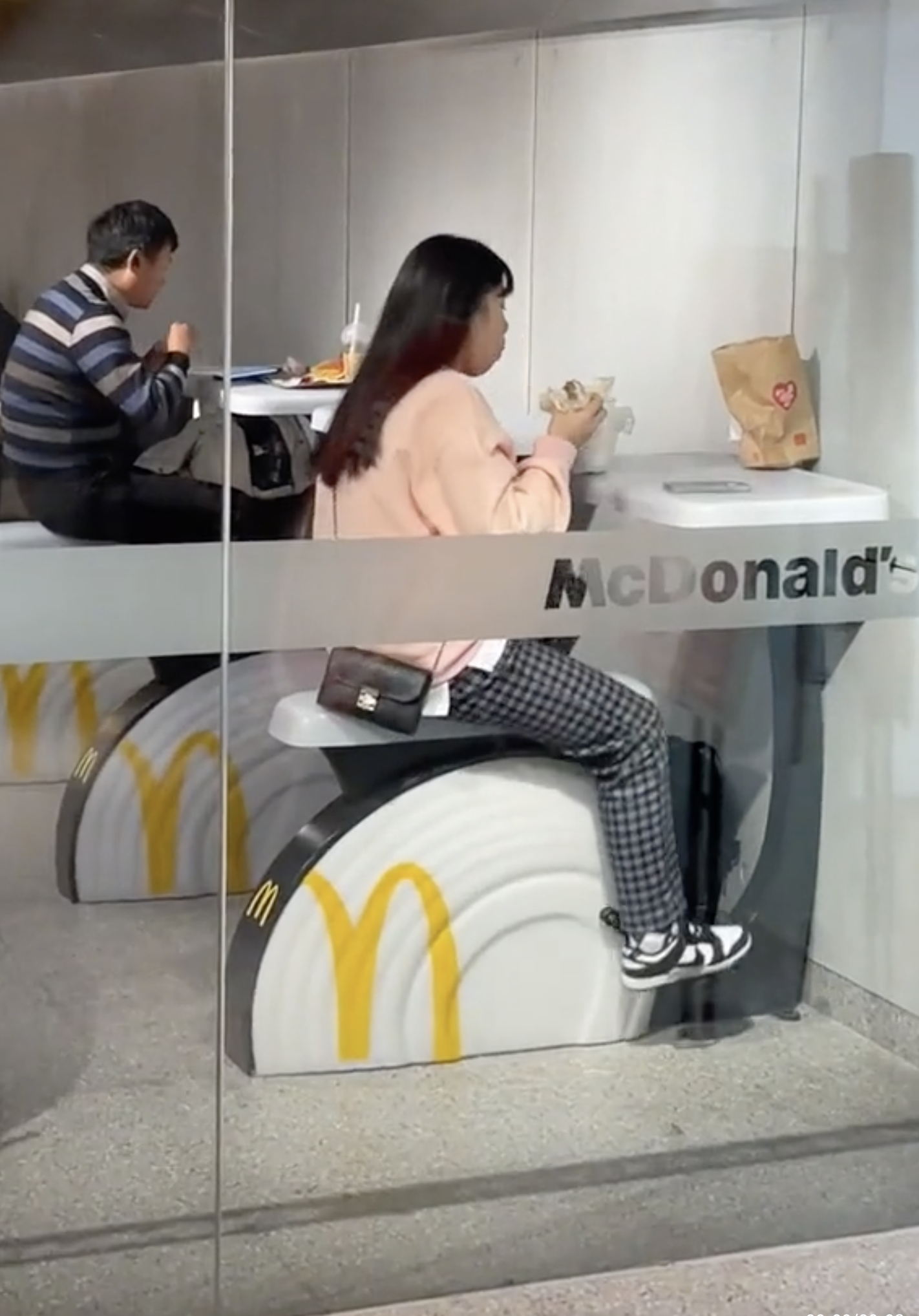這段影片在網路上傳開後,麥當勞拍影片解釋說,設置腳踏車是為了達到低碳排的環保目標,而且全車使用回收的塑膠材料製成,顧客還能將手機放置在桌子左上角,一邊騎車一邊充電~