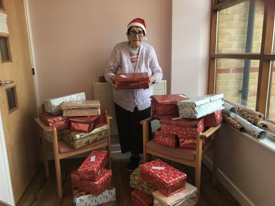 ▼Fran每天花1個小時來裝飾鞋盒,用印著聖誕節元素的包裝紙將鞋盒變得華麗漂亮。她還準備了不同的禮物,比如給成年人準備衣服、多米諾骨牌、洗護用品;給小孩準備玩具、玩偶、書籍、零食和文具等等。平均每一份禮物要花5英鎊(約台幣197元),僅僅2019年這一年,Fran就在禮物上花了2500英鎊(約台幣98,805元)。她自己付了很大一部分,也收到了不少慈善捐款。
