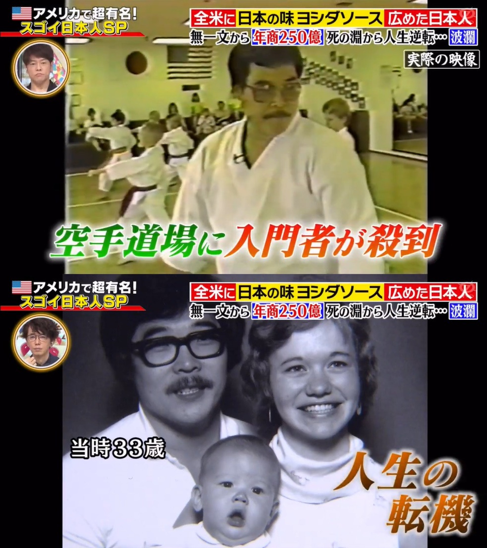 ▼1970年代末期美國經濟蕭條,空手道學校幾乎沒有學生,吉田投資失敗債務纏身,就連聖誕節的回禮都沒錢買。他想到以前媽媽調製的日本燒肉醬汁,就自己調製出來送給朋友當回禮,沒想到大受歡迎。