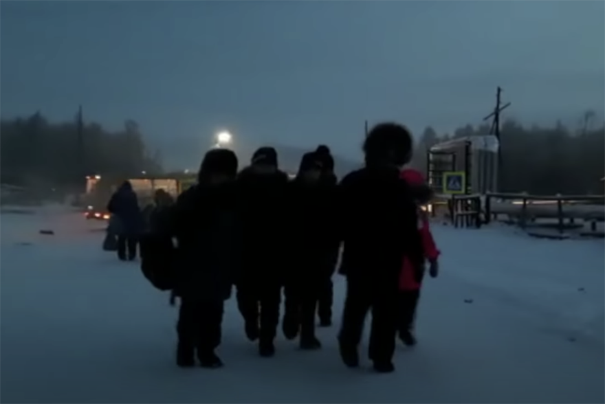 ▼按照當地的低溫停課標準,溫度降到零下52度,小學1年級至4年級就會停課。高年級學生的停課標準為零下56度。當地時間12月8日上午9時,奧伊米亞康氣溫下降到零下51度,距離低年級學生的停課標準只有1度的差距。但按照規定,小學生們還是要照常上課。