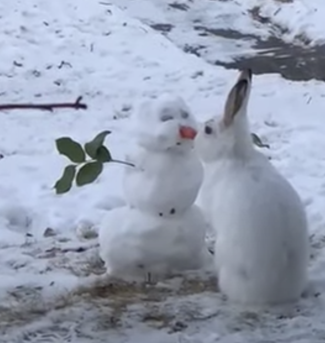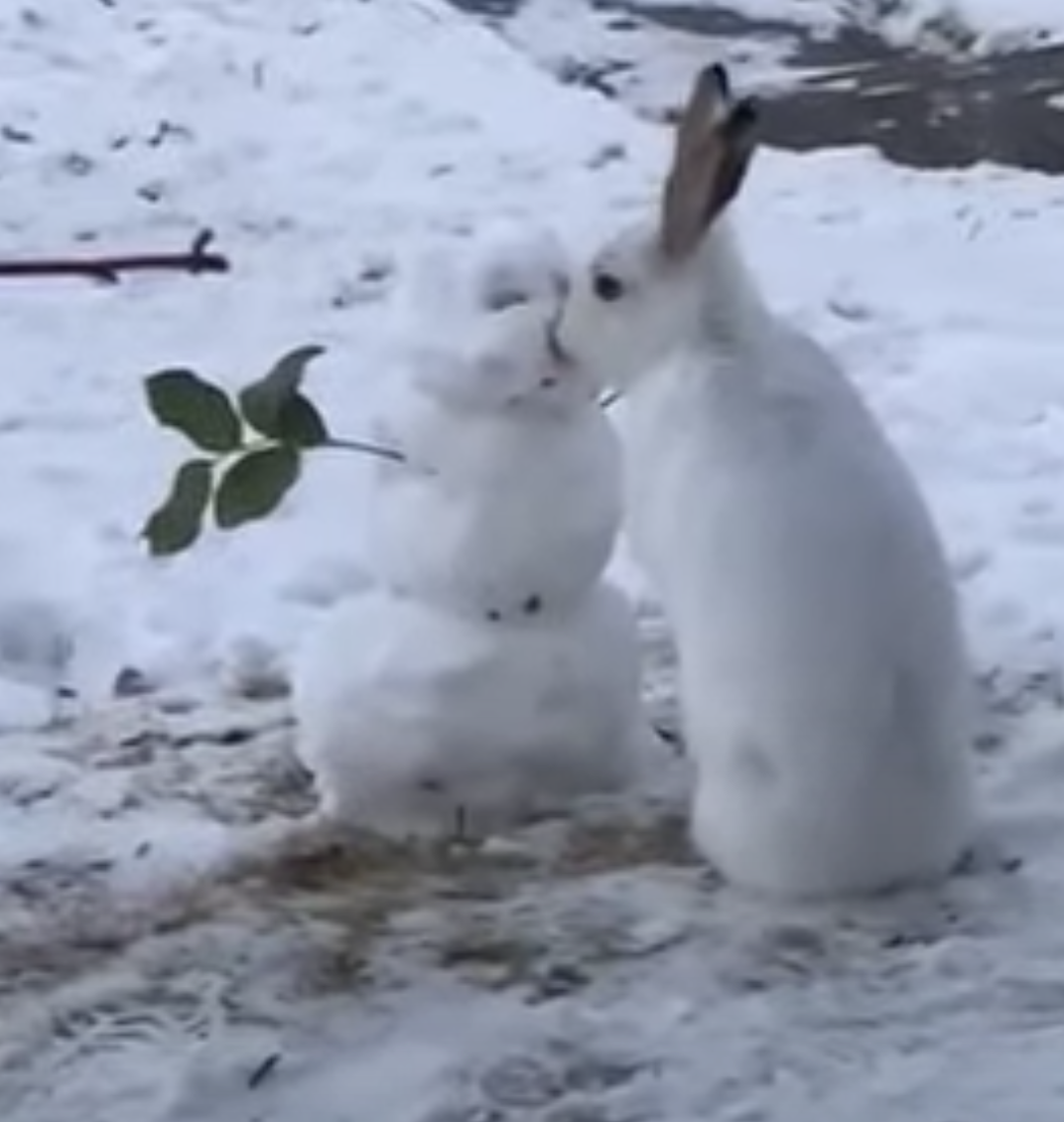 2021年12月28日下雪天最開心的事就是堆雪人!加拿大卡加利(Calgary)的一位網友堆了一個小巧可愛的雪人,為了讓雪人更加生動,還拿紅蘿蔔當鼻子、樹枝當手臂。沒想到這個萌萌的雪人引來了一位不速之客,那就是一隻全身雪白的兔子!牠看到雪人後沒有嚇跑,反而蹦蹦跳跳來到了雪人面前。