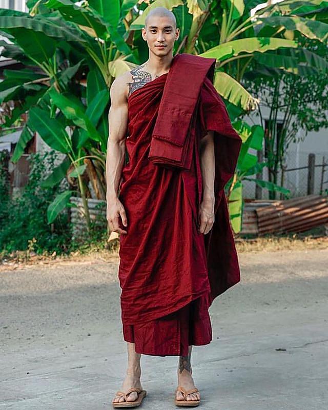 ▼有一段時間Paing Takho剪掉長髮,短期出家。他穿著袈裟的和尚照流出後,大家都覺得非常驚艷,一致認為他是「世上最型的和尚」。