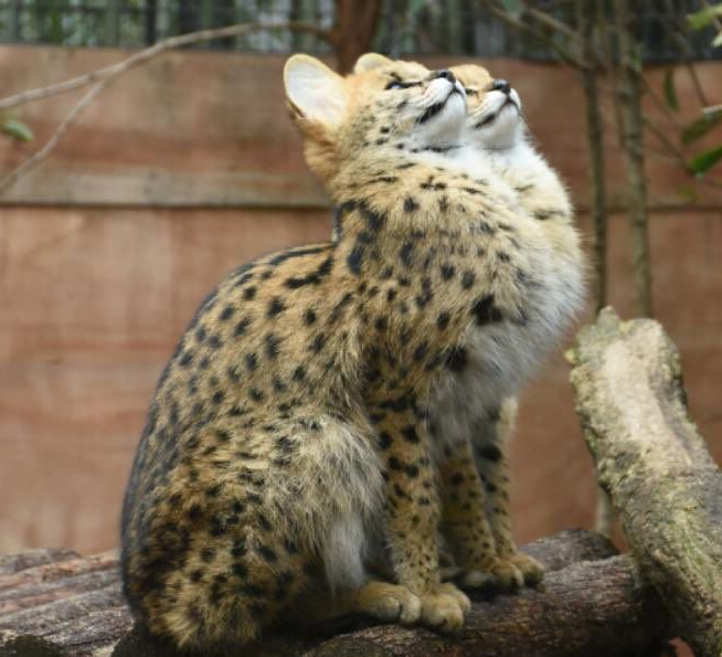 2022年01月03日這是動物界的社交法則嗎?日前國外一位網友去動物園遊玩時,偶然看到了兩隻藪貓的有趣互動。只見一隻藪貓閉著眼睛仰頭放空,另一隻藪貓看到同伴的奇怪動作後,竟精準複製,擺出一模一樣的姿態。牠們排排坐的模樣超可愛~