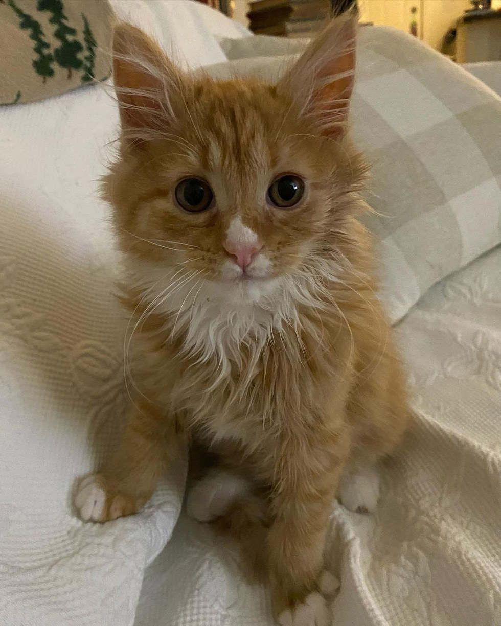 2022年01月05日國外網友Alexa Elliot是動物救援組織Little Wanderers NYC的志工,她平時會照顧社區中的流浪貓,給牠們餵食、帶牠們去做絕育。有一天,一隻大概6週大的橘色小奶貓跑到她家的院子裡找吃的。那隻小貓的膽子非常大,還非常親人,跟Alexa平時見到的浪貓很不一樣。
