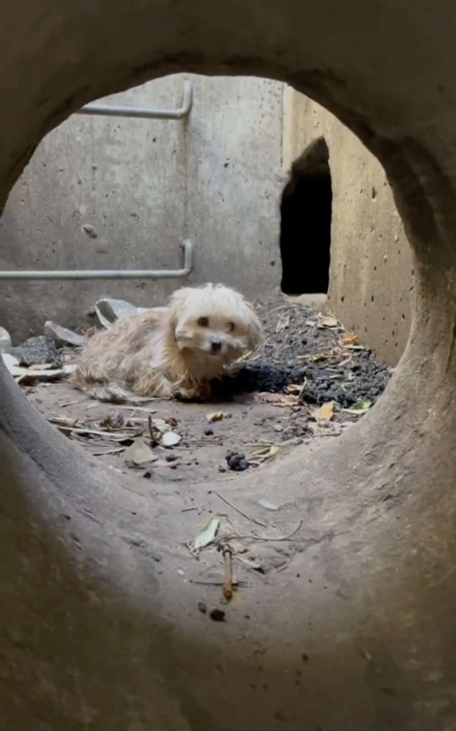 路過排水洞口!竟遇見小白汪「被洪水困住」好絕望 小眼神向外求救:你能幫我嗎?