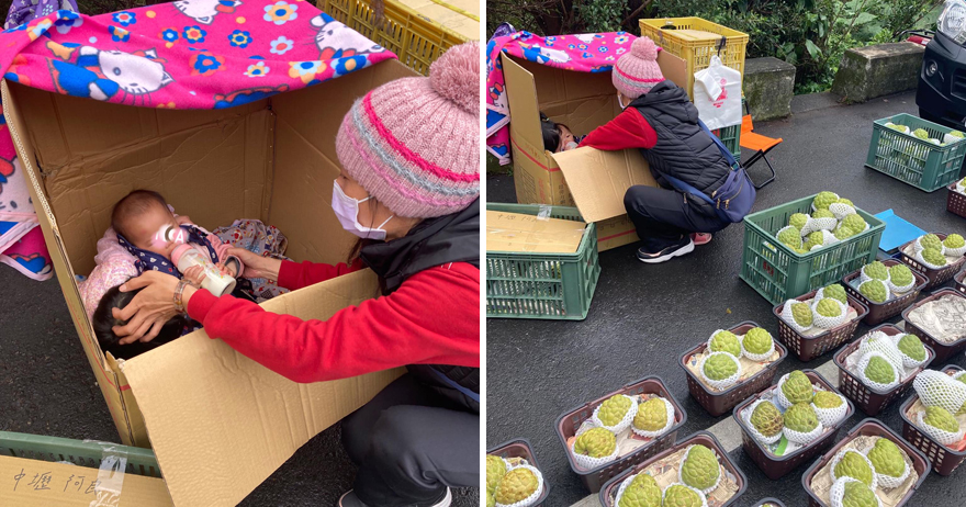 虎頭山賣釋迦!媽頂寒風「咬牙撐生計」 「嬰兒睡紙箱」狂流鼻涕網鼻酸