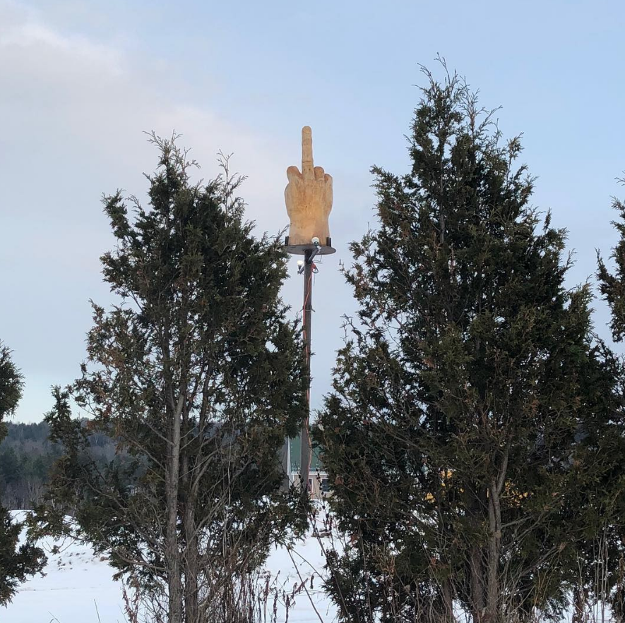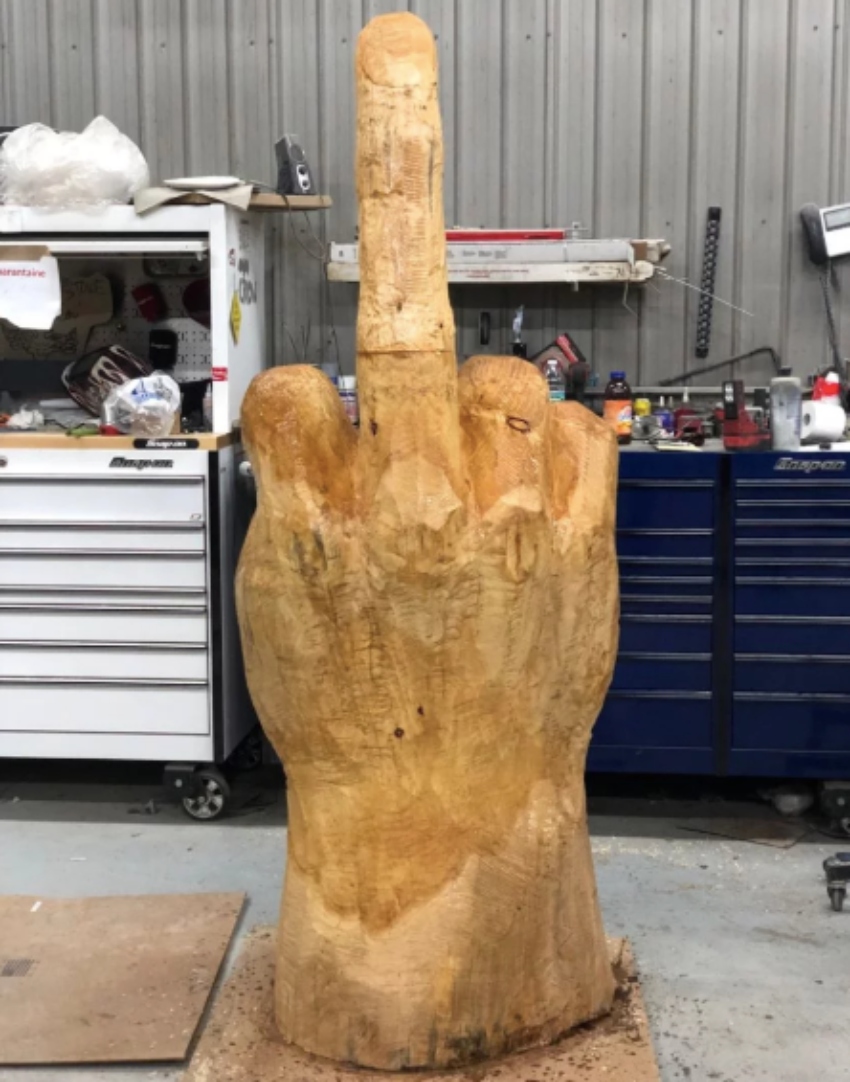 ▼10年來他用盡了所有的辦法,要求在自己的土地蓋車庫的申請還是無法獲得批准。忍無可忍之下,他決定花4000美元(約新台幣12萬元),雕刻出一個超巨大的中指表達不滿!