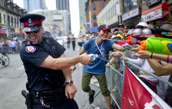 ▼加拿大警察出了名的無比親切,遇各大慶典時,也都會與民同樂!以下這張照片,可千萬別以為警察先生只是下車巡邏而已,其實他正打算向這位擺攤的小女孩,購買一杯她在家門口自製自銷的檸檬水呢!根本暖警無誤~