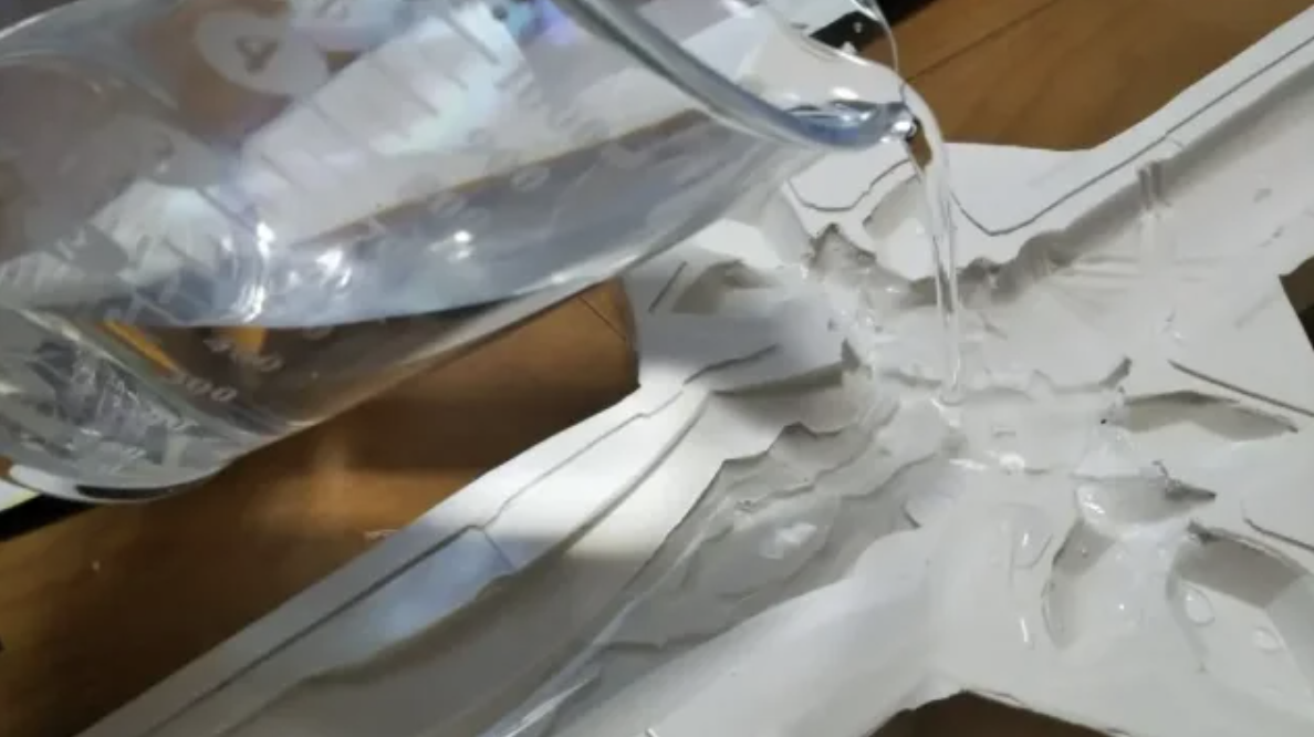 ▼推主還公開了製作方法。他先製作開模模具,倒入透明樹脂,再去除氣泡,調整輪廓後就製作出「藍薔薇之劍」的初模。