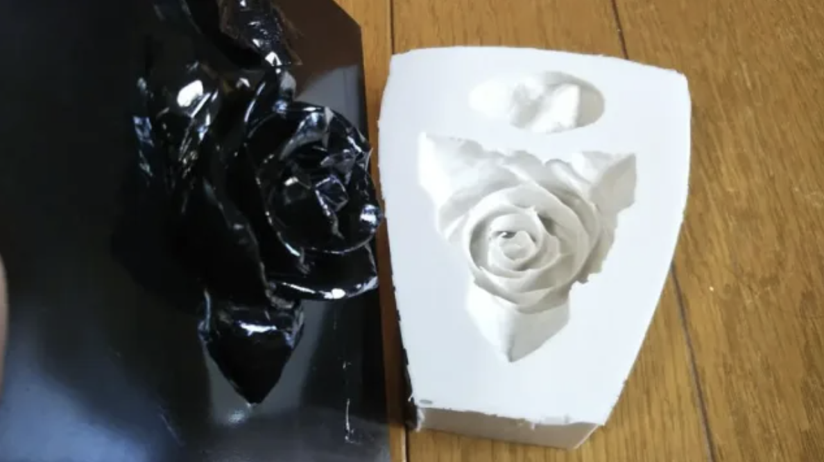 ▼劍上的薔薇裝飾也不能馬虎,推主透過開模製出玫瑰,塗裝後安裝到劍身上,「藍薔薇之劍」就做好了。