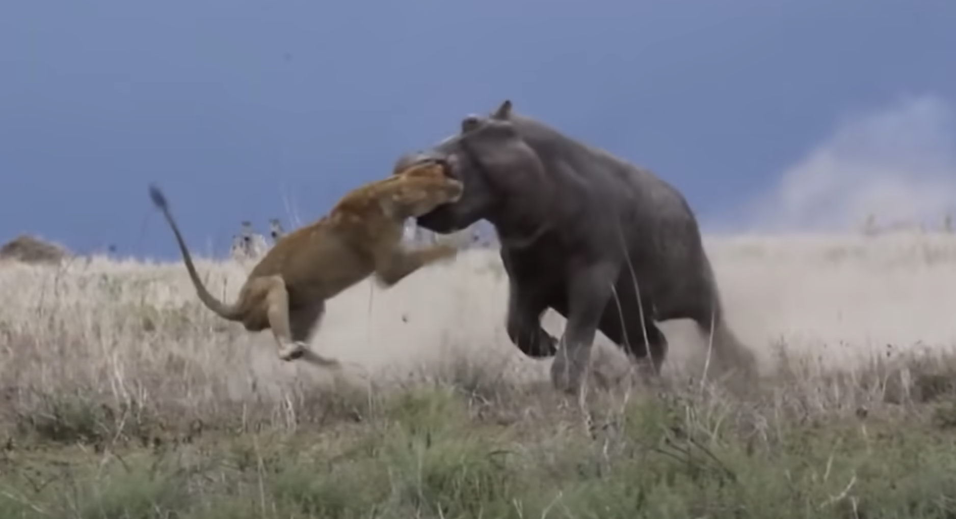 不要惹河馬! 獅子趁牠午睡「想偷襲」 下一秒被反殺GG了!