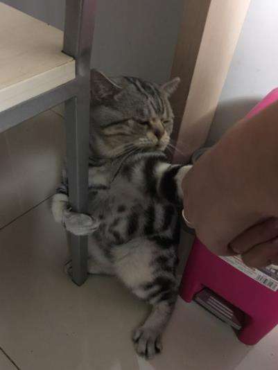 ▼微博一位網友透露,當他召喚喵咪去洗澡時,牠就會緊抱住椅子腿,怎麼也不鬆開,任憑主人怎麼拉拽,就是一副不願屈服的表情。
