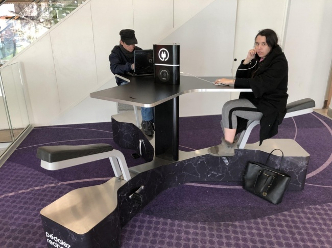 ▼手機沒電時,可以將它們鎖在這台機器內充電。