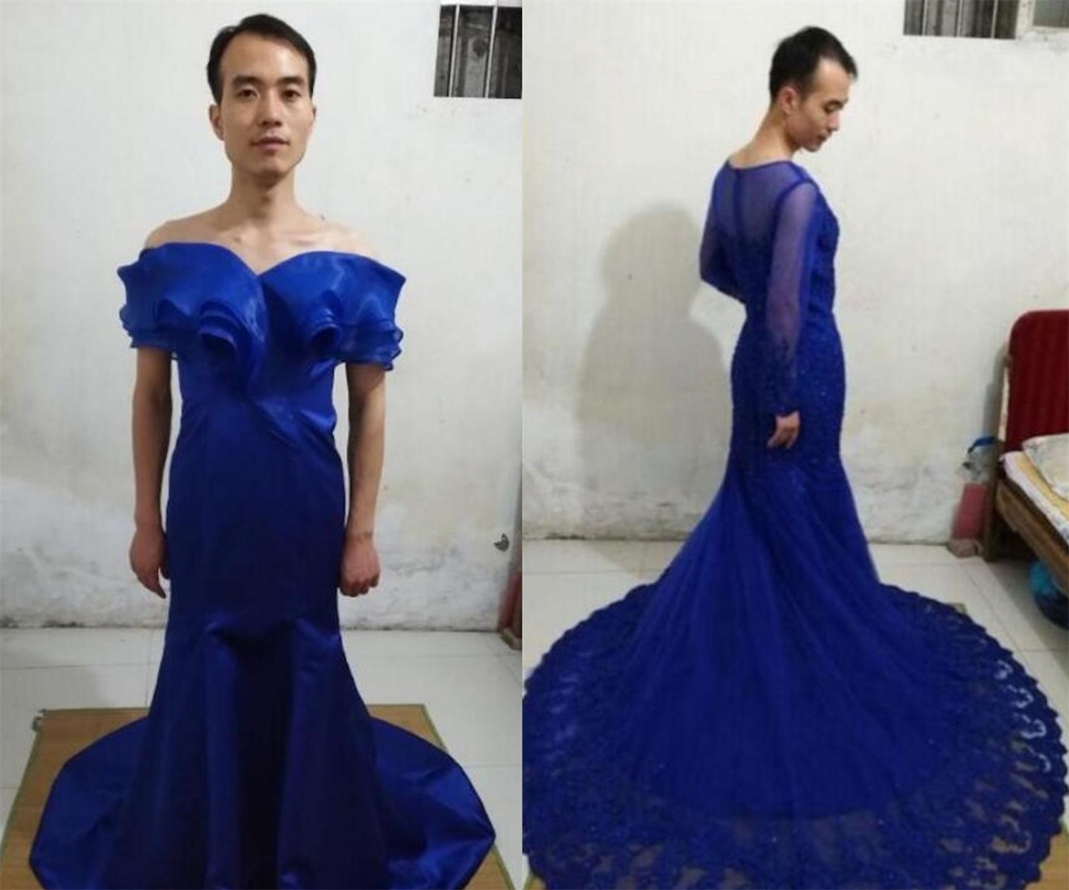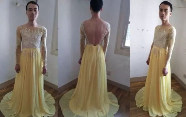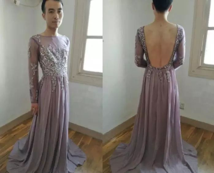 ▼安卓想買一件禮服在重要場合穿,她看上了一件款大露背的長袖薄紗禮服,要價約100美元(3000多新台幣),想到價格不低,又怕買回家後不滿意,她於是請賣家拍幾張實拍照。沒想到賣家實在太敬業,親自上陣將這款禮服的各個顏色都試穿拍照。