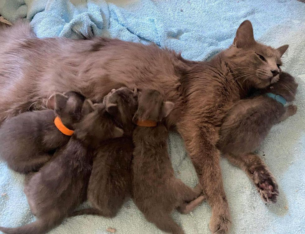 ▼BFF的Nikki說,貓媽媽骨瘦如柴,連行動都很困難。雖然牠的情況很糟糕,但牠把小貓們都照顧得非常好,牠是一個很棒的媽媽。